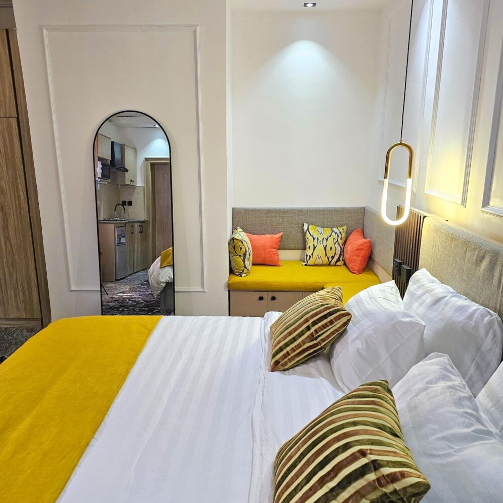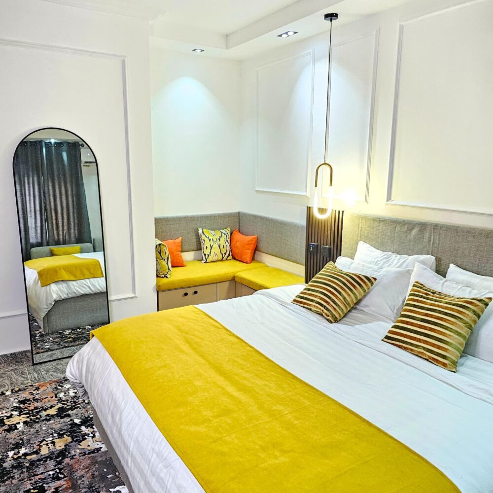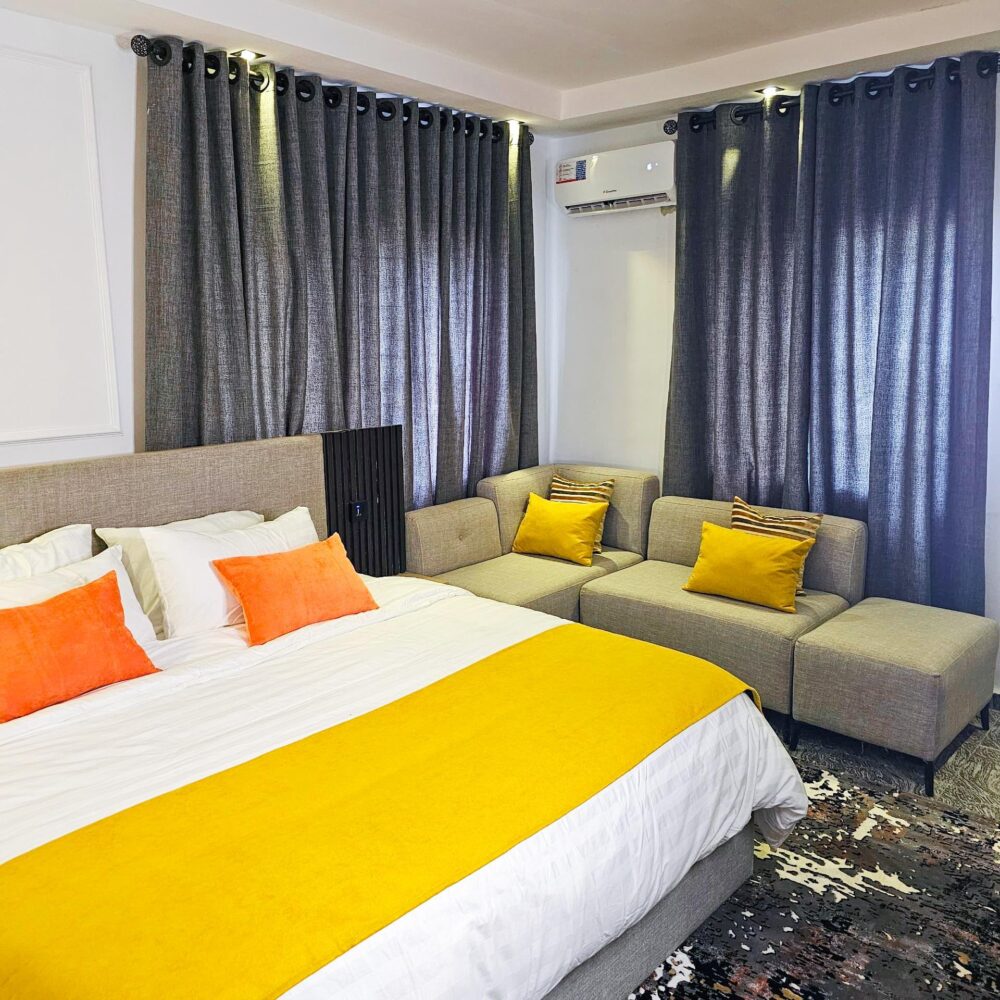 Located in Garki, our haven offers: Wi-Fi and 24/7 light, peaceful atmosphere, central location, nearby attractions, spas for relaxation, convenient supermarkets, MTN office nearby, H-Medix for healthcare, delicious restaurants, recreation parks & fun spots in few minutes drive.