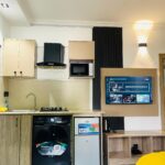 • Bathroom | Cleaning products | Body soap | Bidet | Hot water | Bedroom and laundry | Free washer – In unit | Essentials | Towels, bed sheets, soap, and toilet paper | Hangers | Bed linens | Extra pillows and blankets | Room-darkening shades | Iron | Mosquito net | Clothing storage: wardrobe | Entertainment | Ethernet connection | TV | Family | Window guards | Outlet covers | Heating and cooling | Air conditioning | Heating | Internet and office | Wifi | Dedicated workspace | Kitchen and dining | Refrigerator | Microwave | Dishes and silverware | Bowls, chopsticks, plates, cups, etc. | Mini fridge | Stainless steel electric stove | Hot water kettle | Wine glasses | Trash compactor | Kitchenette | Space where guests can heat up and refrigerate food | Dining table | Location features | Private entrance | Separate street or building entrance | Laundromat nearby | Parking and facilities | Free parking on premises | Paid street parking off premises | Paid parking lot on premises